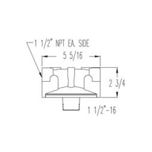 Cim-Tek 51013 800 Series Industrial Filter Adaptor, Aluminum, No Gauge Ports, No Bypass, Single Adaptor, 1-1/2"-16 UNF Thread, 1-1/2" NPT In/Out